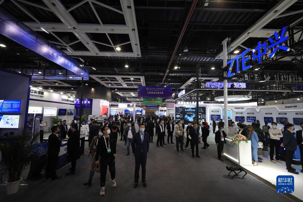 10月18日,嘉賓在2021全球工業互聯網大會上參觀體驗。新華社記者 楊青 攝