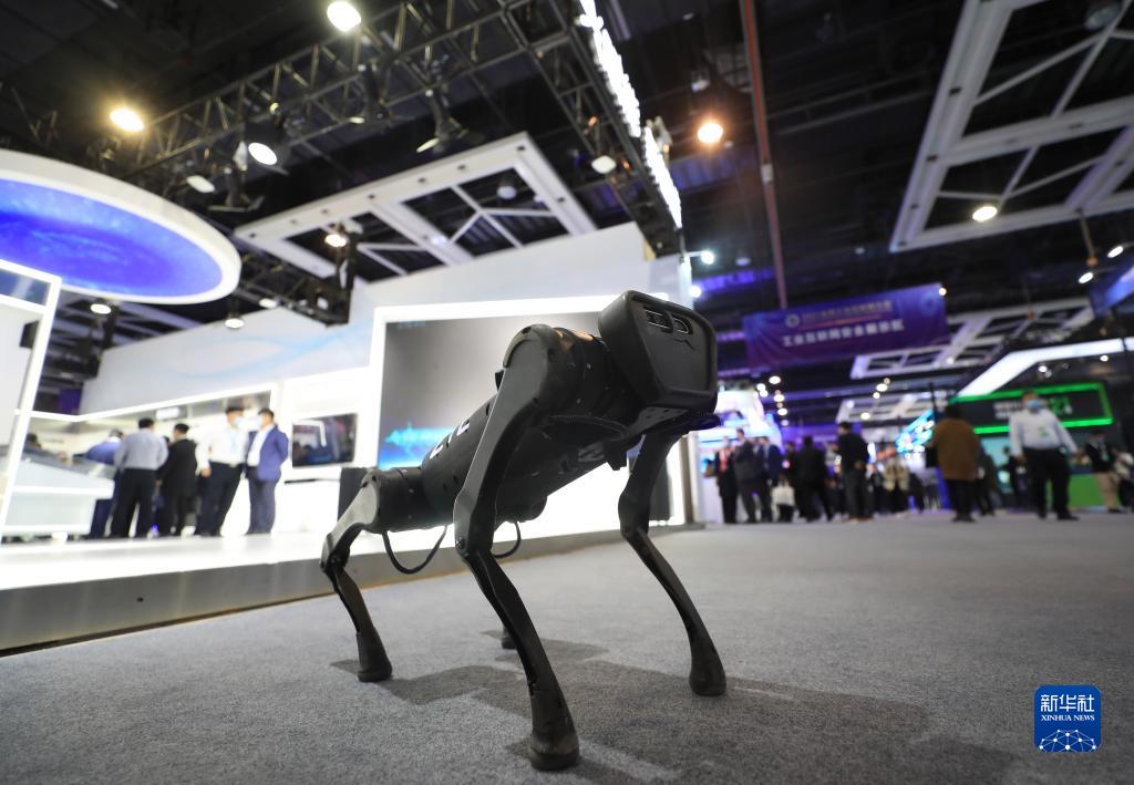 這是10月18日在2021全球工業互聯網大會中興通訊展區拍攝的機器狗。新華社記者 楊青 攝
