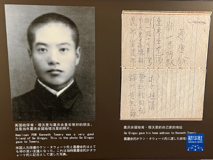 圖為陳列館展廳內展出的葛慶余的照片和寫有地址的紙條。 新華社記者 于也童 攝