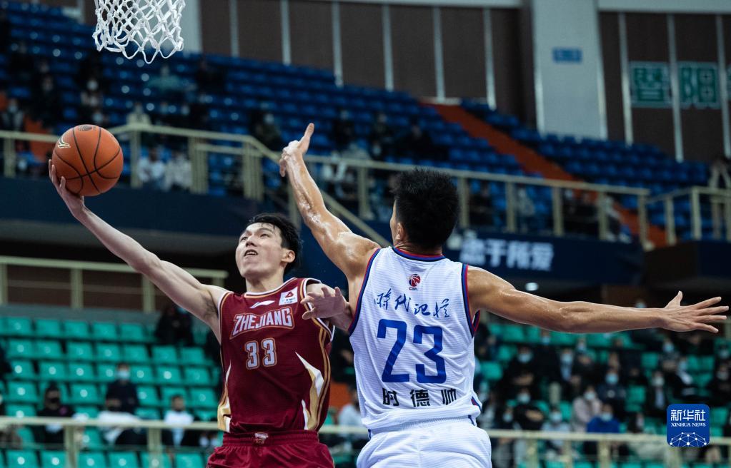 10月25日,浙江稠州金租隊球員吳前(左)在比賽中上籃。新華社記者 王冠森 攝
