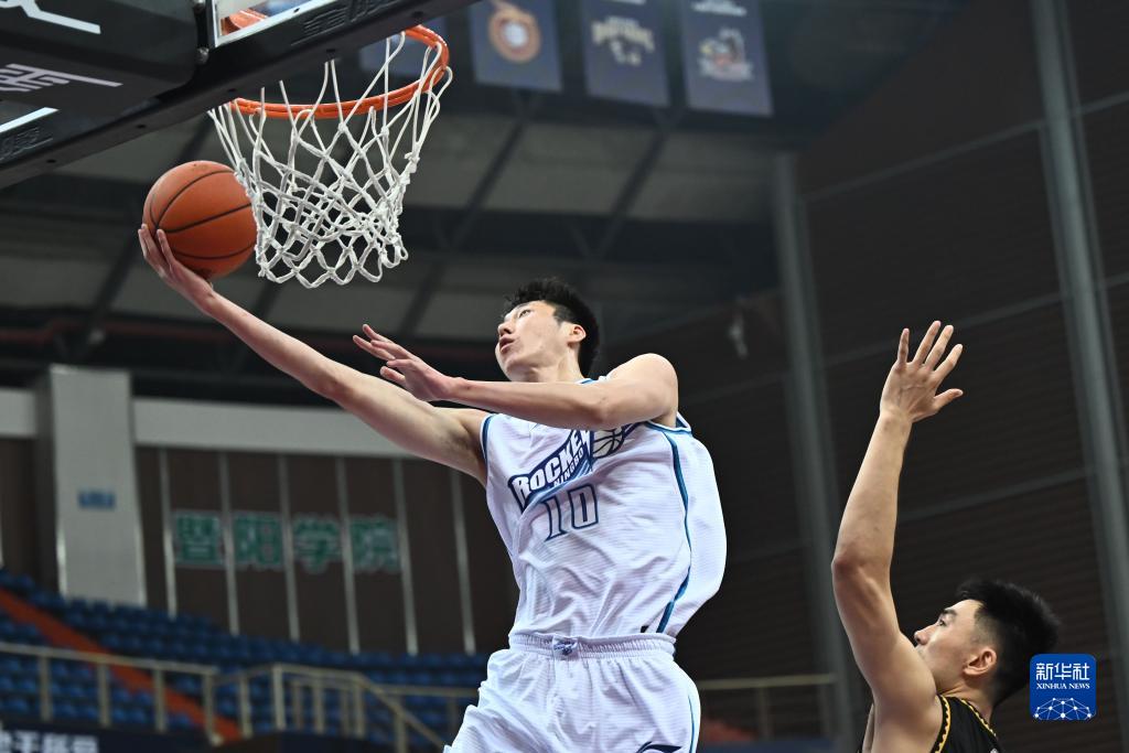 11月2日,寧波甬興證券隊球員寧鴻宇(左)在比賽中上籃。新華社記者 陳欣波 攝
