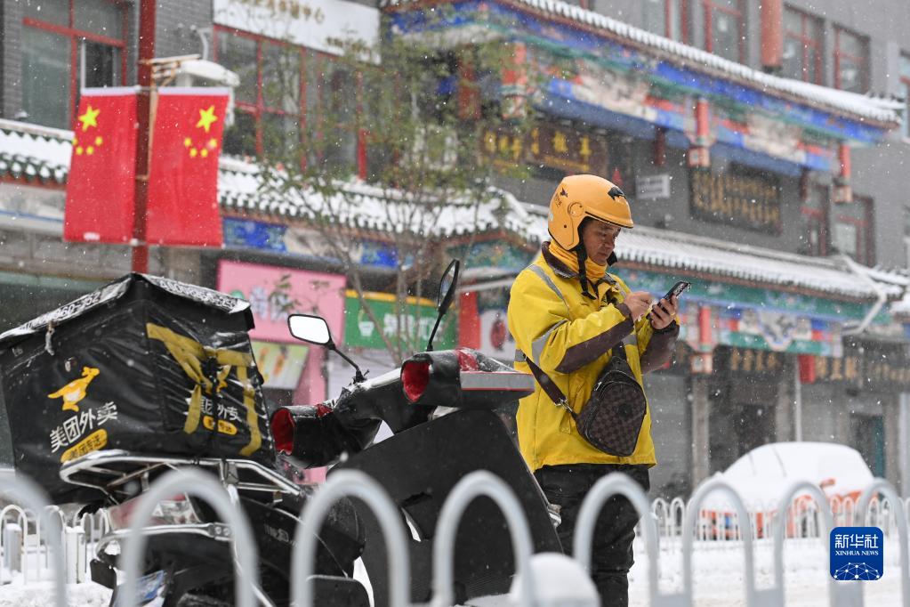 11月8日,在沈陽市沈河區,一名外賣員在手機上查看訂單。新華社記者 蔡湘鑫 攝