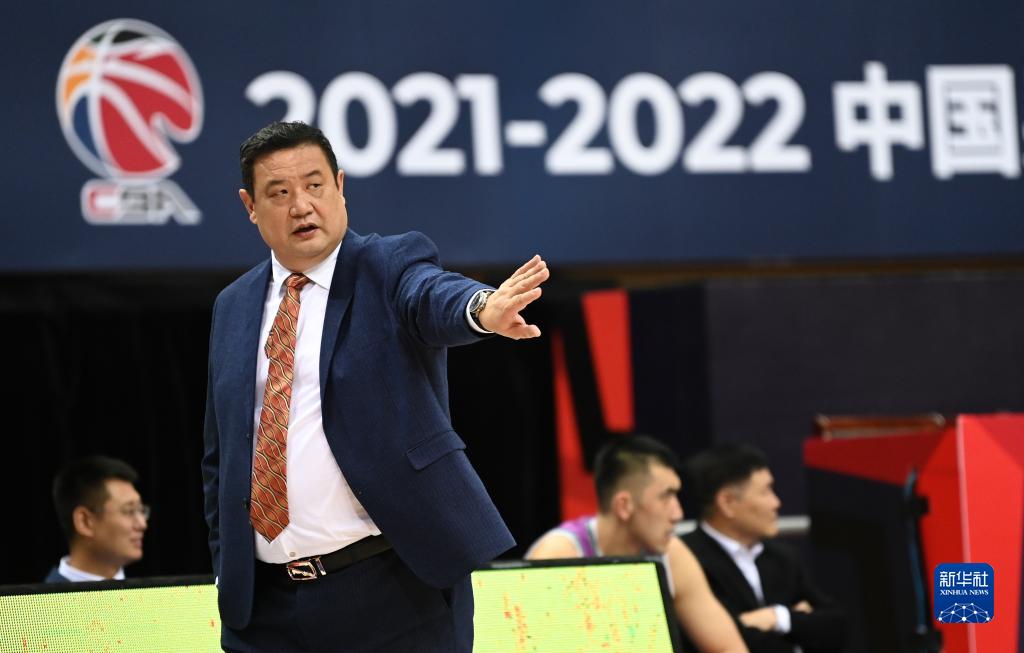11月8日,山東高速隊主教練徐長鎖在場邊指揮。新華社記者 孫凡越 攝