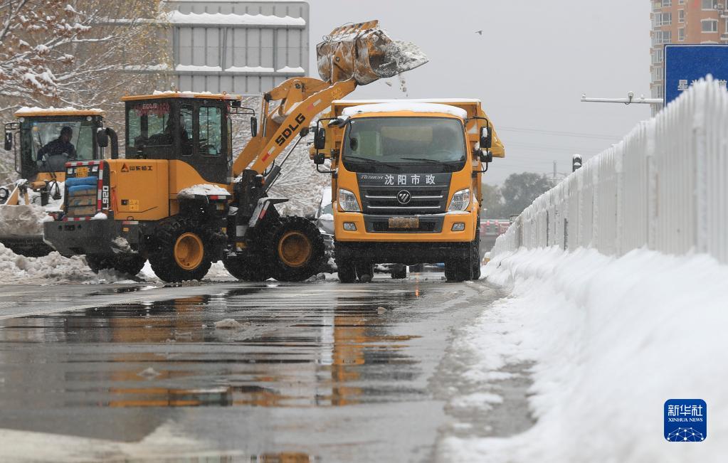 11月9日,在沈陽市渾南區,工作人員操控機械設備進行除雪作業。新華社記者 楊青 攝