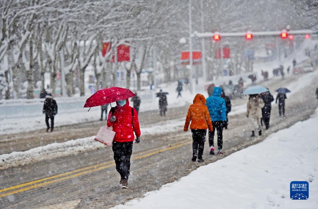 11月9日,行人走在本溪市被積雪覆蓋的路上。新華社發(林林攝)