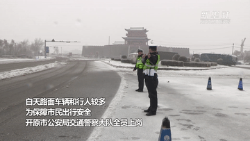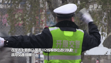 白天路面車輛和行人較多,為保障市民出行安全,開原市公安局交通警察大隊全員上崗,在全市主要路口、國道102線等部位進行執勤,在茫茫風雪中,為過往的車輛和行人們“引航”。