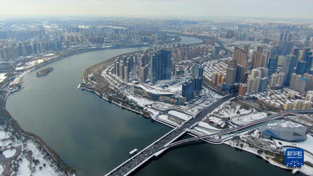 11月11日拍攝的沈陽市渾河兩岸雪景(無人機照片)。新華社記者 楊青 攝