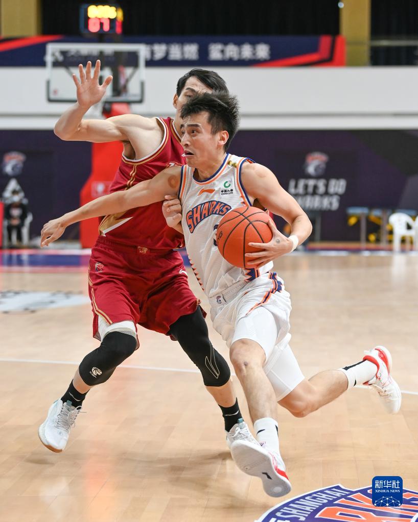11月11日,上海久事隊球員羅漢?。ㄇ埃┰诒荣愔羞M攻。新華社記者孫凡越攝