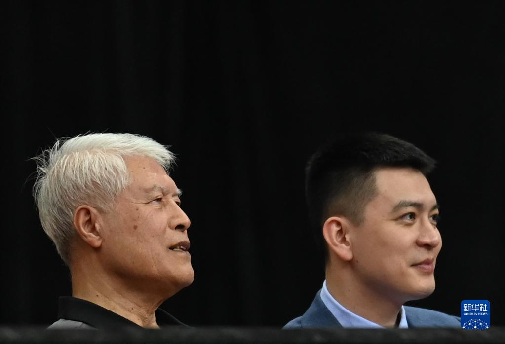 11月14日,遼寧本鋼隊主教練楊鳴與顧問蔣興權(左)在替補席觀賽。新華社記者 孫凡越 攝
