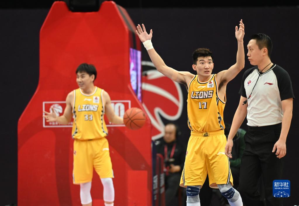 11月14日,浙江廣廈控股隊球員孫銘徽(右二)不理解裁判判罰。新華社記者 孫凡越 攝