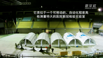 遼寧省大連市于14日啟動第三輪全員核酸檢測,以便有效控制病毒傳播。根據疫情防控需要,11日下午,五艙合一“獵鷹號”方艙核酸檢測實驗室在大連市體育中心投入使用。