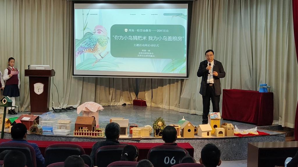 隨后,沈陽市渾南區第一小學“愛鳥護鳥”志愿者服務隊出發前往目的地為小鳥喂食,搭建糧房。