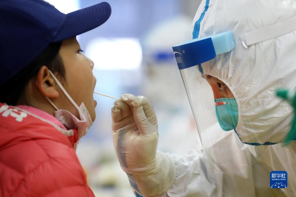 11月17日,醫護人員為大連市玉華社區居民進行核酸檢測采樣。新華社記者 姚劍鋒 攝