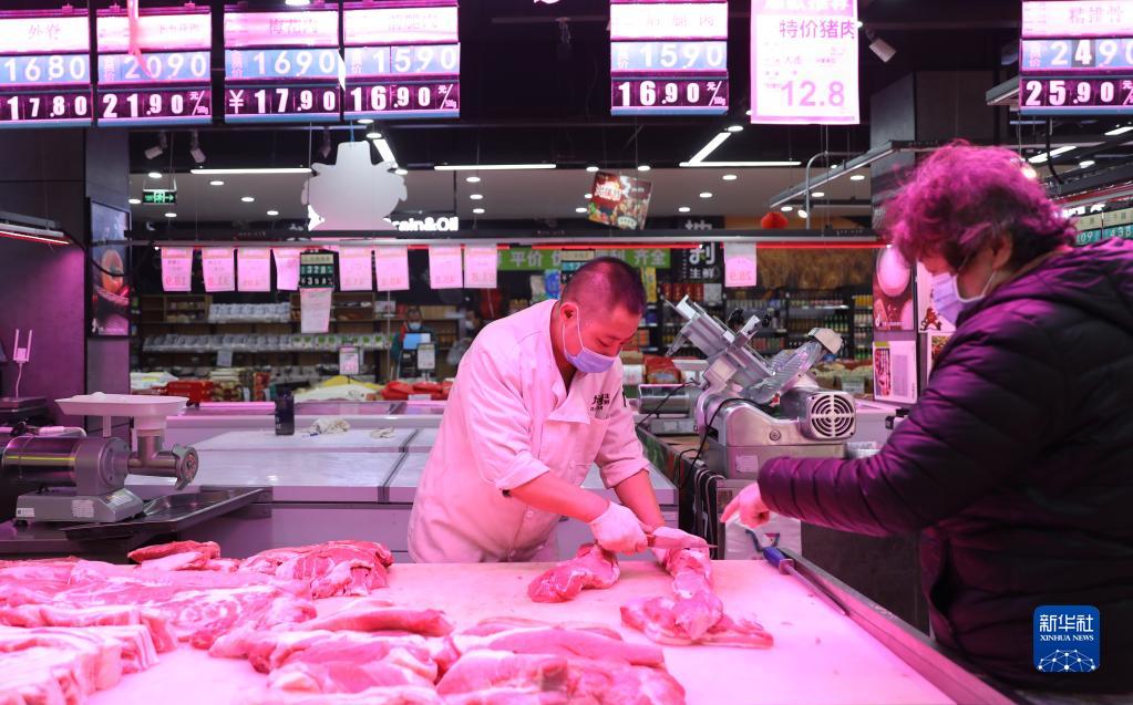 11月18日,一家生鮮超市的售貨人員為顧客切分肉品。新華社記者 姚劍鋒 攝