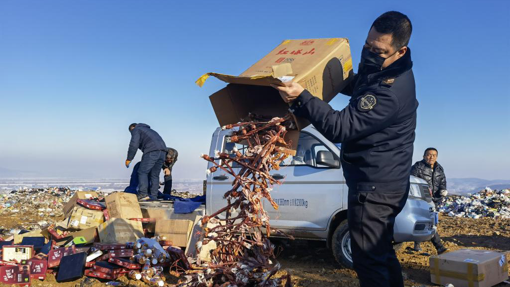 圖為執法人員正在銷毀假冒偽劣食品。(受訪者供圖)