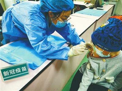 3~11歲兒童接種新冠疫苗后,如需再接種其他的免疫規劃疫苗或者非免疫規劃疫苗,需間隔14天以上;如已經接種了其他的免疫規劃疫苗或者非免疫規劃疫苗,則需要間隔14天以上再接種新冠疫苗?!暗枳⒁?,如果遇到被動物咬傷或者有意外傷害等情況,須接種狂犬病疫苗和破傷風疫苗時,可以不考慮上述時間間隔要求?!眲⒒鄯Q。(記者 樊華/文 李浩/攝)