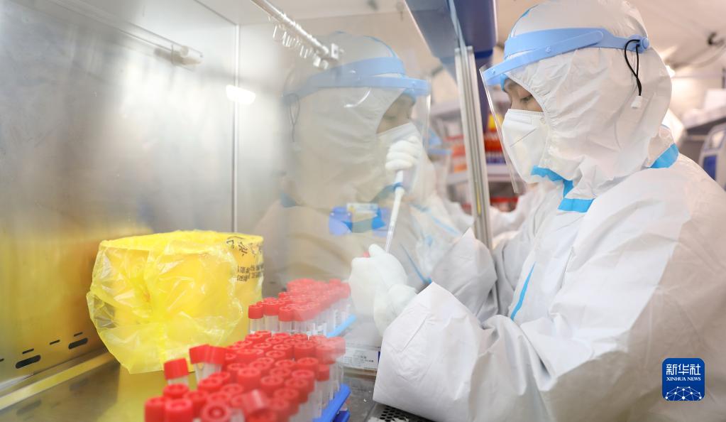 11月24日,“獵鷹號”硬氣膜實驗室工作人員將樣本加入到核酸提取試劑中。新華社記者 姚劍鋒 攝