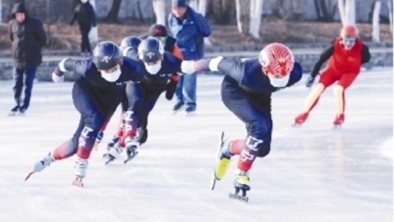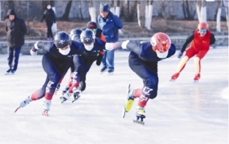 遼寧省短道速度滑冰隊的運動員、教練員,與年逾七旬的老年滑冰愛好者同場競技。如此“混搭”的冰雪運動場景上周末出現在沈陽萬柳塘公園的冰面上。