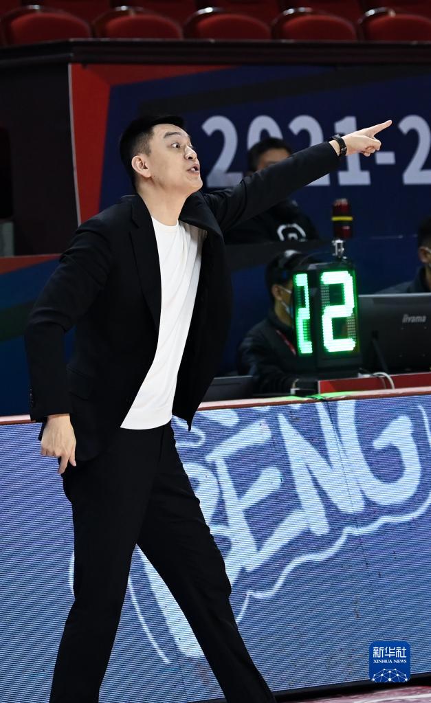 1月15日,遼寧本鋼隊主教練楊鳴在比賽中指導。當日,在吉林長春進行的2021-2022賽季中國男子籃球職業聯賽(CBA)第二階段第23輪比賽中,福建潯興股份隊以83比109不敵遼寧本鋼隊。新華社記者 顏麟蘊 攝