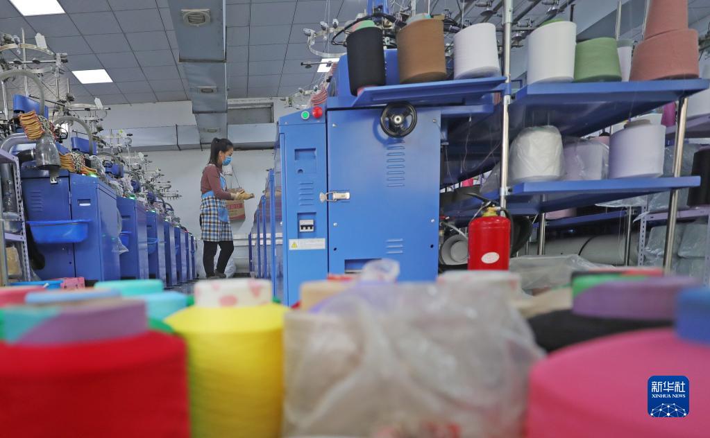 2020年1月7日,在小北河鎮富程針織廠,工人在生產襪子。新華社記者 楊青 攝