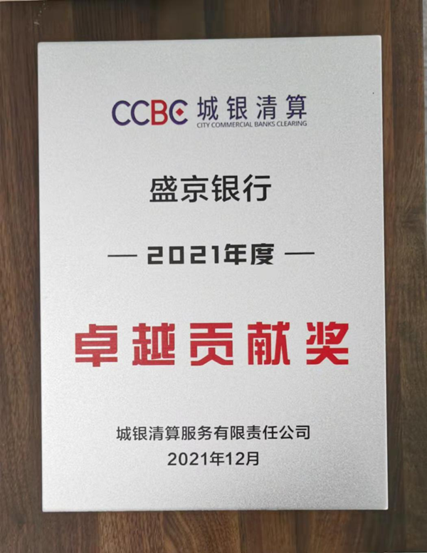 • 盛京銀行榮獲城銀清算頒發2021年度“卓越貢獻獎”