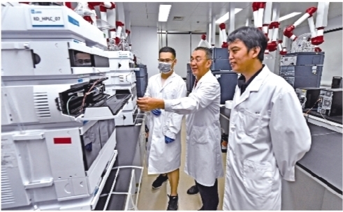 上海醫藥集團(本溪)北方藥業有限公司技術專家在實驗室研究工作。 本溪高新區供圖