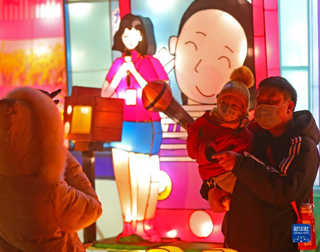 春節期間,在沈陽市棋盤山關東影視城內舉辦的2022中國沈陽迎春燈會吸引眾多市民參觀。展出的3萬余盞特色花燈采用四川自貢傳統工藝,由200余位能工巧匠結合東北民俗特色手工制作完成。新華社記者 楊青 攝