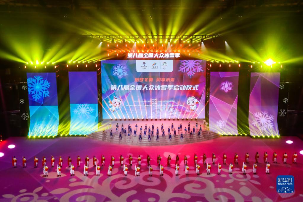 2021年12月19日,在湖北武漢,演員在第八屆全國大眾冰雪季啟動儀式上表演。新華社記者 肖藝九 攝