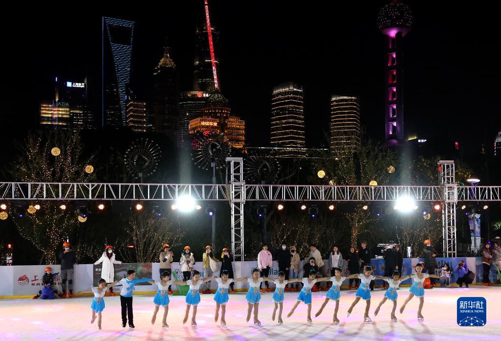 2021年12月23日,小朋友在第三屆“上海白玉蘭國際冰雪節”開幕式上表演。新華社記者 陳飛 攝