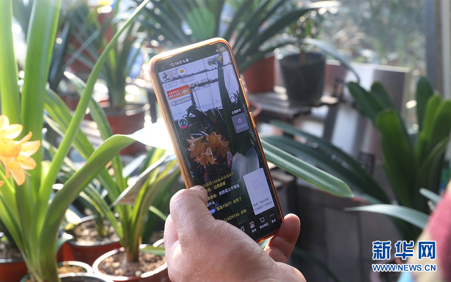 圖為花農萬丙江正在直播。新華網夏銘陽攝