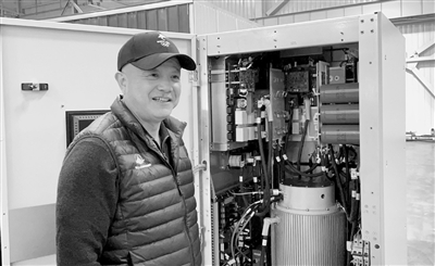 走進生產車間,映入眼簾的是一個個充滿科技感的黑色機柜?!斑@就是全球領先的磁懸浮飛輪儲能設備,氫能源發電車搭載的就是這個高科技設備?!鄙蜿栁⒖匦履茉醇夹g有限公司董事長張慶源說。