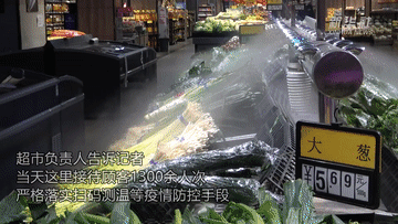 在綏中縣中心城區內的一家大型超市,無論是米面糧油,還是蔬菜水果、生鮮熟食,商家備貨充足,顧客可以自由選購。超市負責人告訴記者,當天這里接待顧客1300余人次,嚴格落實掃碼測溫等疫情防控手段。