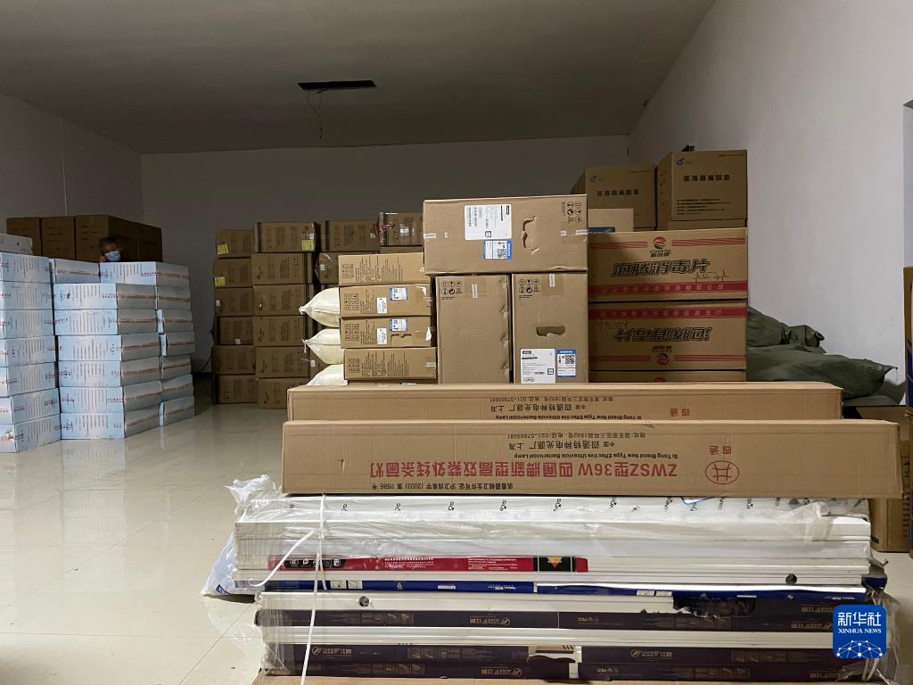 2月13日拍攝的綏中縣一物資儲備點(手機照片)。新華社記者 李昂 攝