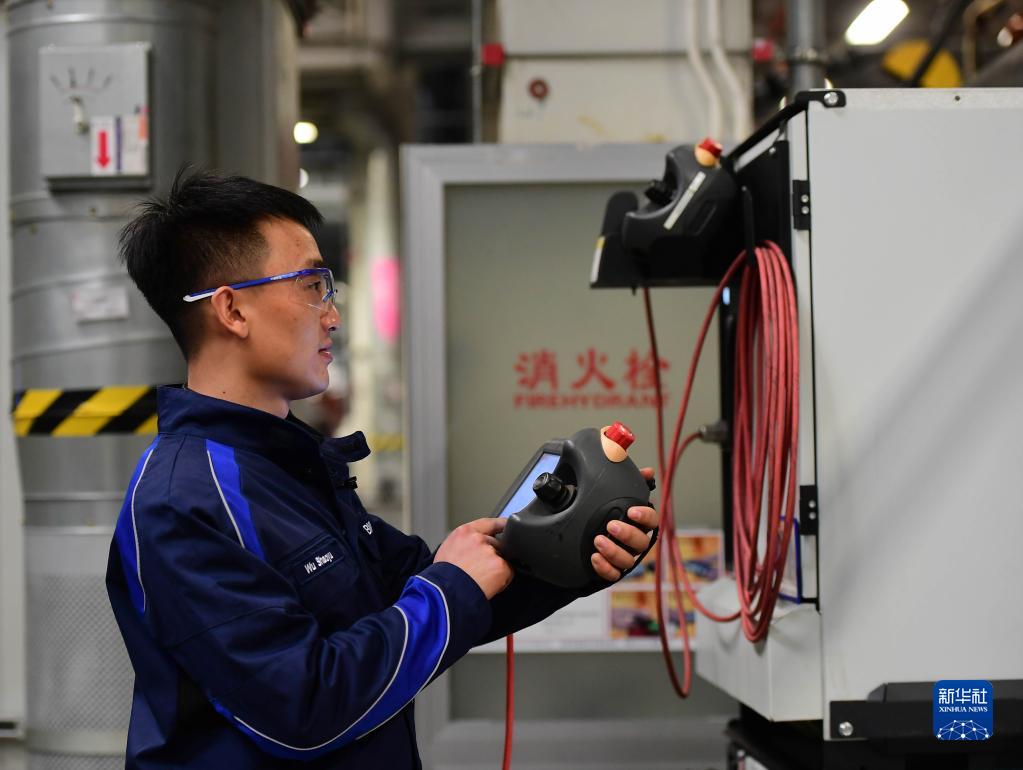 2月16日,吳紹宇在華晨寶馬鐵西工廠車身車間工作。新華社記者 楊青攝