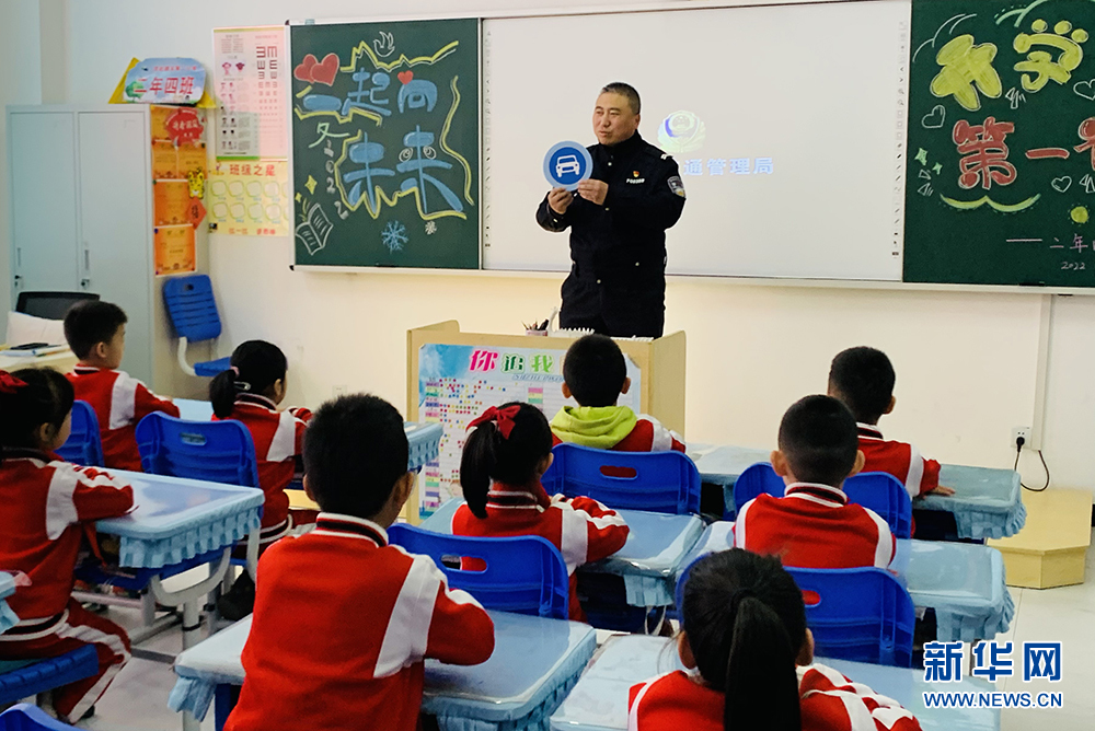 圖為3月1日,沈陽市沈北新區道義第二小學開展“開學第一課 文明禮讓伴我行”主題宣傳活動。期間,沈北交警大隊民警來到學校,為同學們講授交通安全常識。新華網發