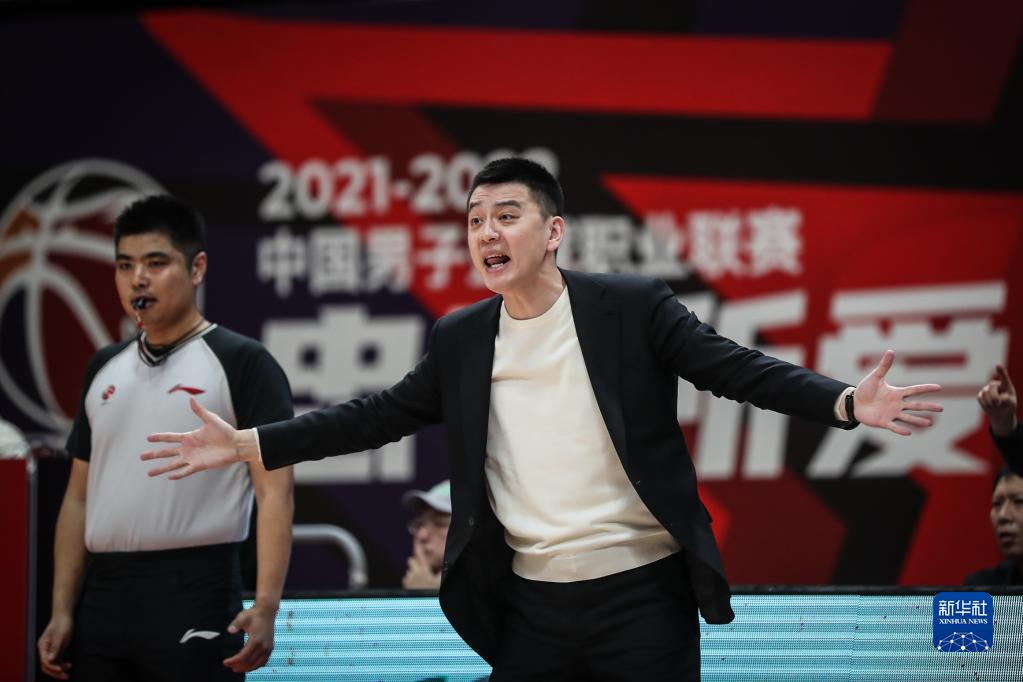 3月1日,遼寧本鋼隊主教練楊鳴在場邊指揮比賽。新華社記者 潘昱龍 攝