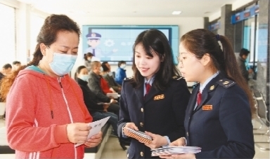 阜新蒙古族自治縣稅務局工作人員為納稅人提供咨詢服務。