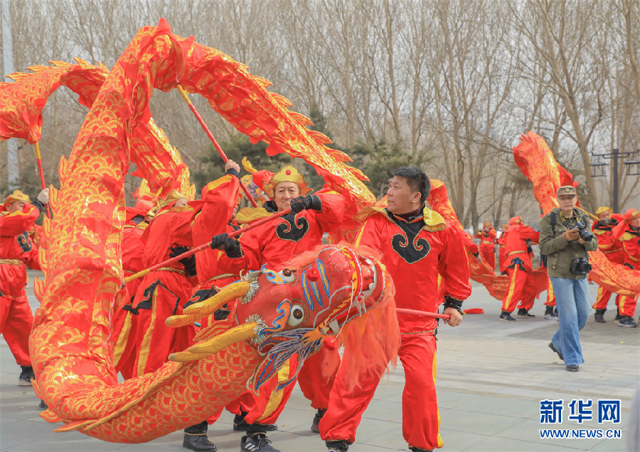 3月4日,沈陽(和平)第七屆龍抬頭文化節在云飏閣啟幕。圖為文化節現場舉行的舞龍表演。新華網唐曉瑭攝