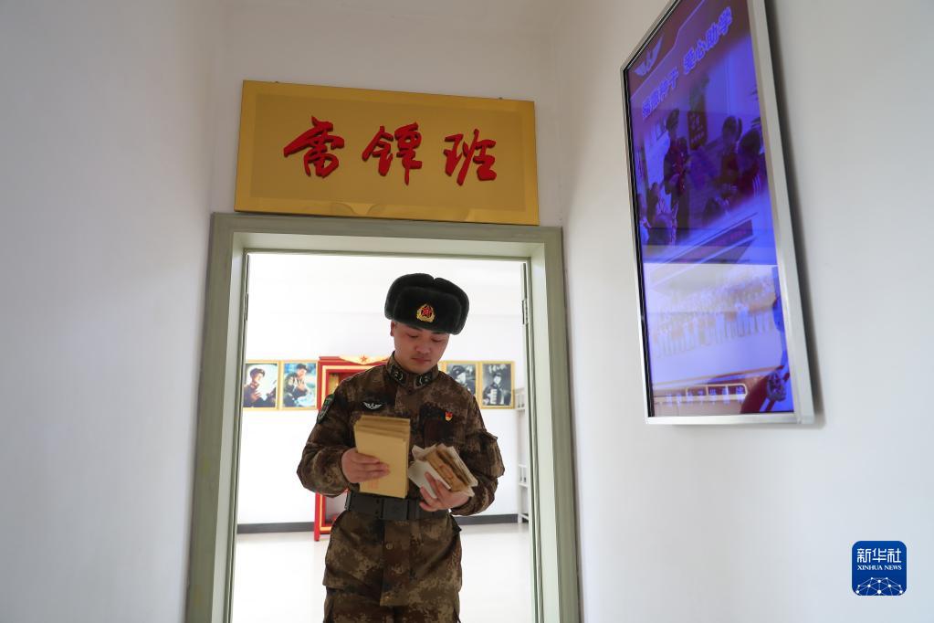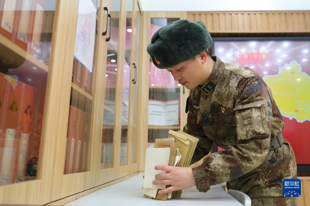 “雷鋒班”戰士在整理“雷鋒班”收到的信件(2月28日攝)。新華社記者 楊青 攝