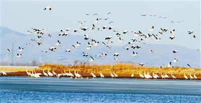 目前,沈陽的白鶴種群數量尤其龐大,全球90%以上的遷徙白鶴都會在沈陽停歇補給。據觀測,2020年秋季,沈陽僅臥龍湖上就有白鶴數量達3300余只?!吧蜿柆F有濕地總面積約8.6萬公頃(水稻田除外),占全市國土面積比率為8.4%?!濉陂g,全市濕地修復219.83公頃,清淤治理181060立方米。通過多年的努力,沈陽為候鳥遷徙提供了更為優質的棲息地?!毕嚓P負責人說。(記者 于海/文 張文魁/攝)