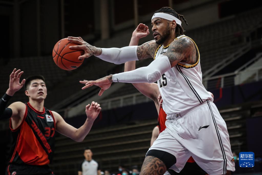3月11日,遼寧本鋼隊球員莫蘭德(右)在比賽中傳球。新華社記者 潘昱龍 攝