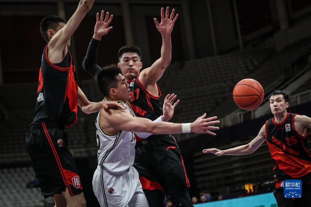 3月11日,遼寧本鋼隊球員郭艾倫(左二)在比賽中傳球。新華社記者 潘昱龍 攝
