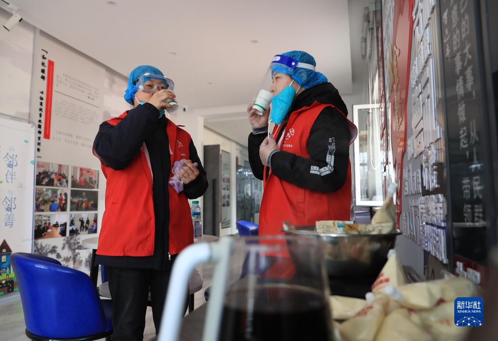 3月17日,在沈陽市大東區金星社區檢測點,社區為抗疫醫護人員和志愿者準備了熱豆漿、暖貼等御寒物品。新華社記者 楊青攝