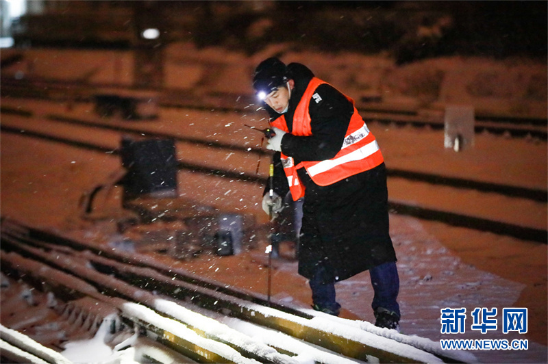 為避免降雪給防疫物資運送帶來的不便,沈陽局集團有限公司大連電務段職工第一時間清除道岔積雪,全力確保鐵路運輸大動脈安全暢通。(新華網發)