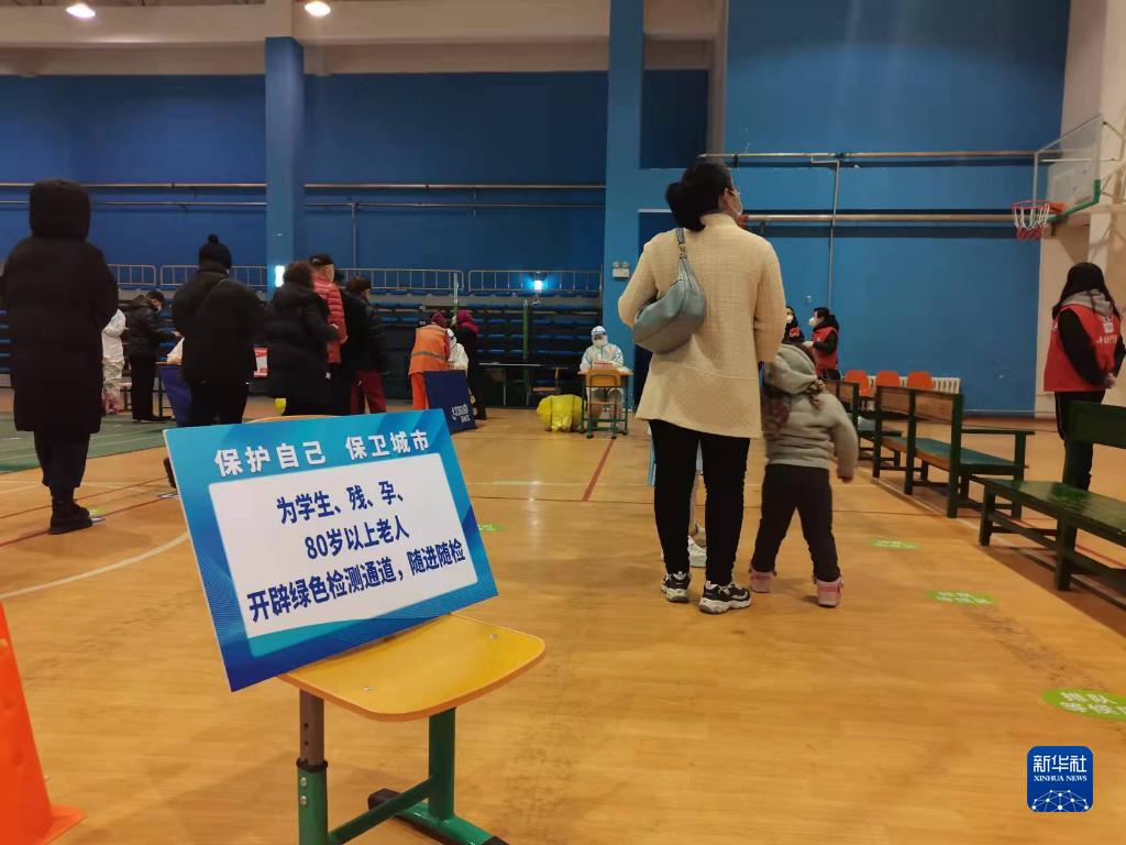 和平一校核酸檢測點開辟了綠色檢測通道 新華社記者 汪偉攝