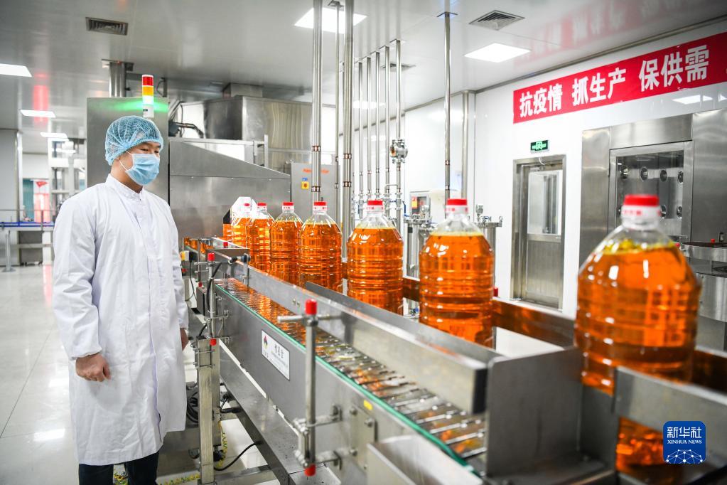 2020年2月20日,工人在益海嘉里(哈爾濱)糧油食品工業有限公司生產車間工作。新華社記者 王松 攝