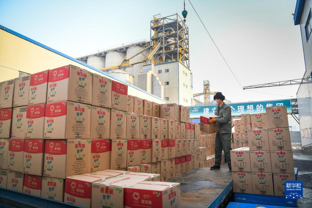 2020年2月20日,在益海嘉里(哈爾濱)糧油食品工業有限公司園區,工人在搬運產品。新華社記者 王松 攝