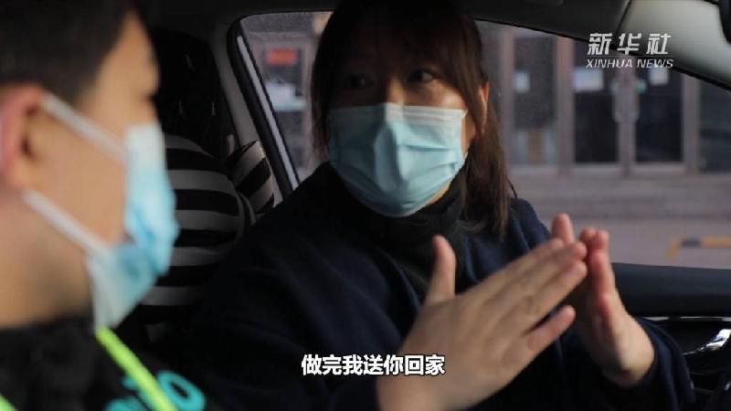 程瑩全程用手語為這名同學翻譯核酸采樣過程中的各項要求和須知,并一直陪在學生身邊,以免他緊張害怕。采樣結束后,程瑩又將學生送回家中。