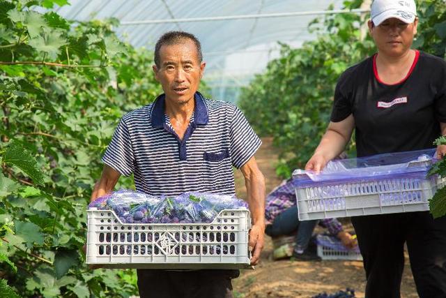 2021年7月,十家子村農民在大棚里采摘葡萄。(受訪者供圖)