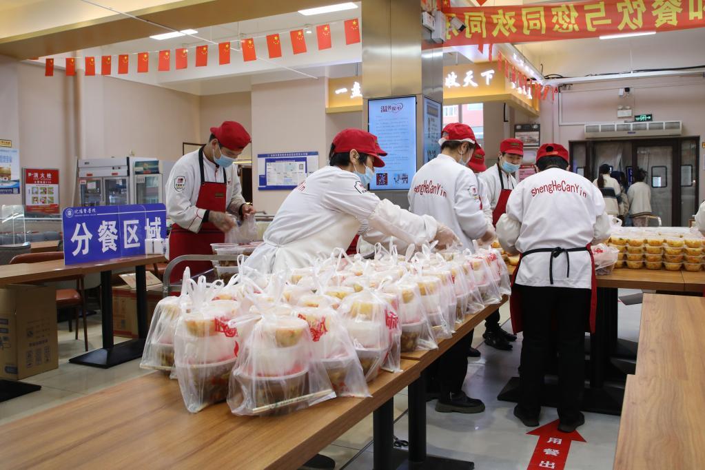 沈陽醫學院后勤人員打包紅燒肉套餐。(圖片由沈陽醫學院提供)